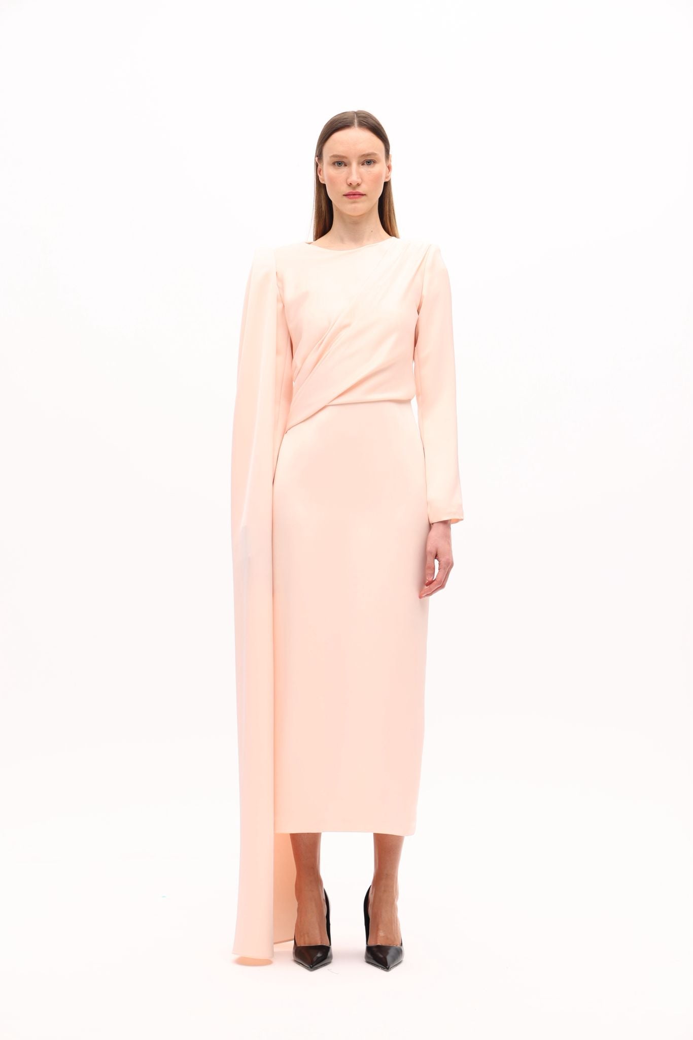 Drape Detay Saten Elbise