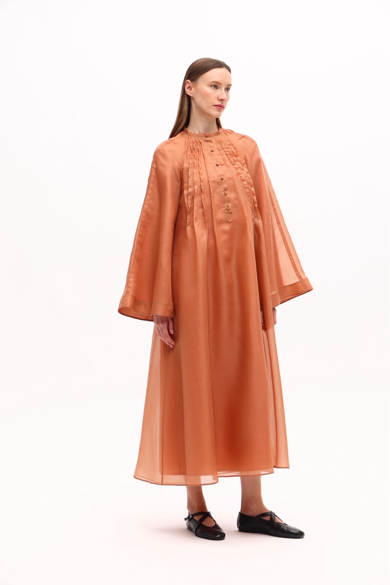Nervür Detay İpek Organze Elbise